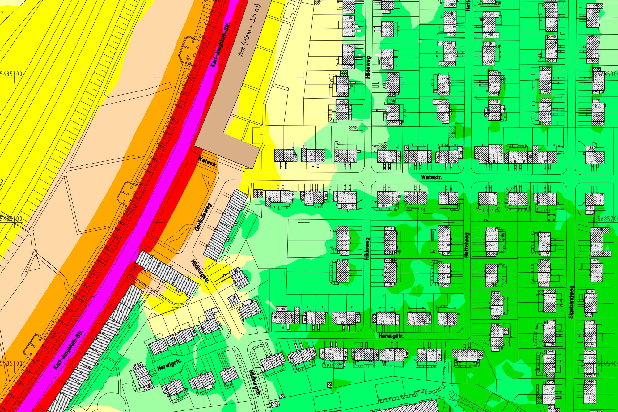 Schallimmissionsprognosen von Straßen- und Schienenverkehrslärm | Beratungen von Schallschutzanforderungen | Vorbereitung und Begleitung passiver Schallschutzmaßnahmen nach der 16. BImSchV | bauliche Schallschutznachweise